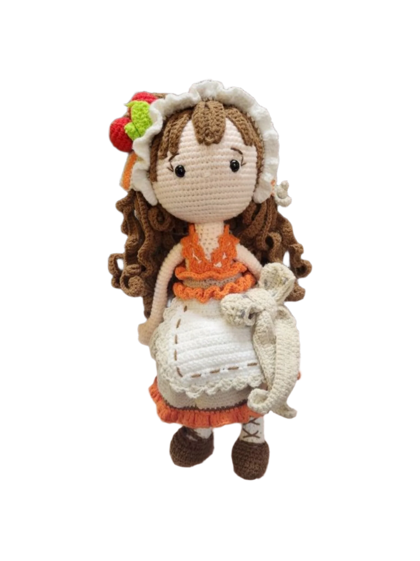 Say hello to Little Miss Cherry Pie, the adorable handmade doll who brings the warmth of a country kitchen to life. With her charming apron, swirly brown curls, and a pie freshly baked from imagination, she’s the perfect companion for tea parties, story time, or pretend baking adventures.